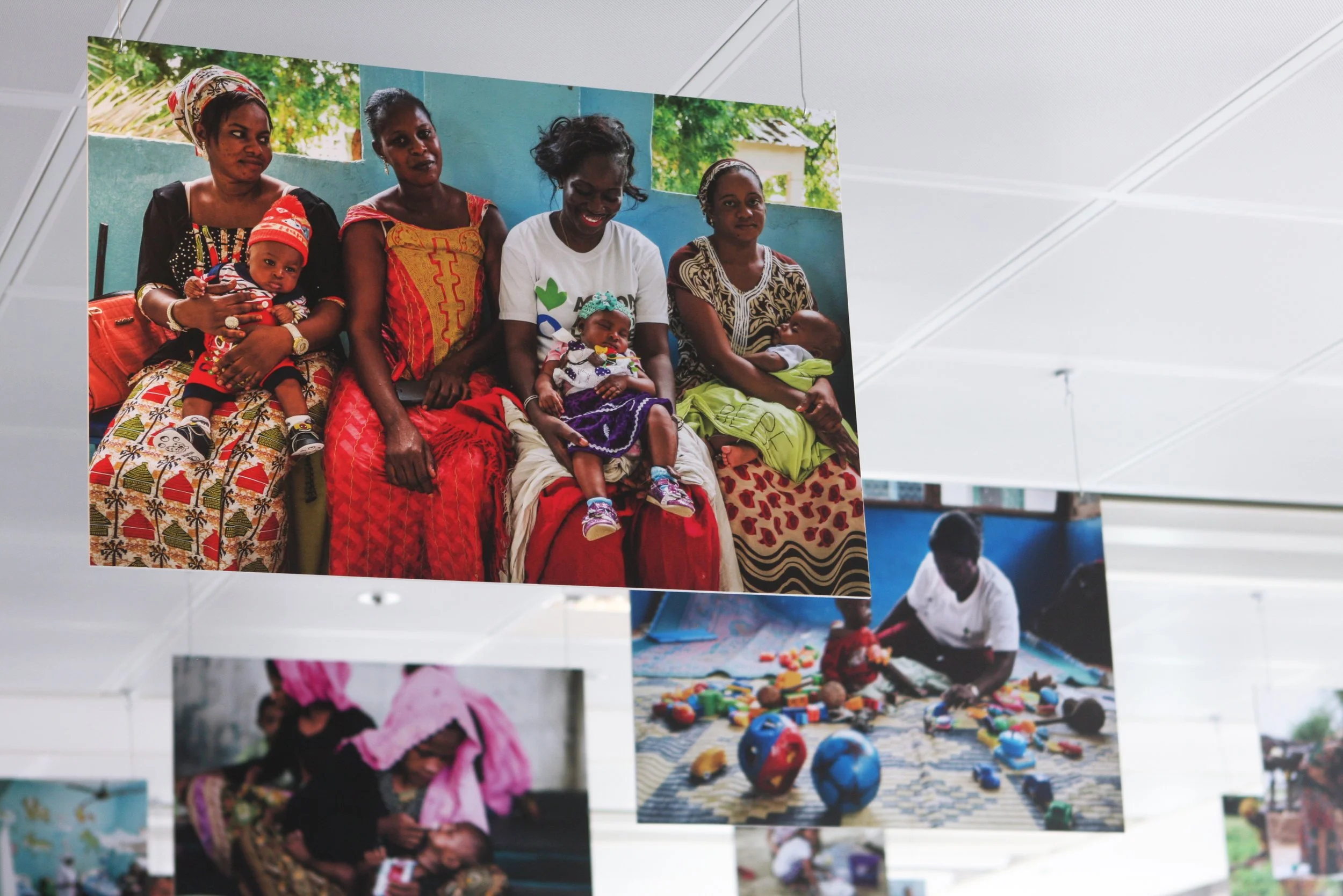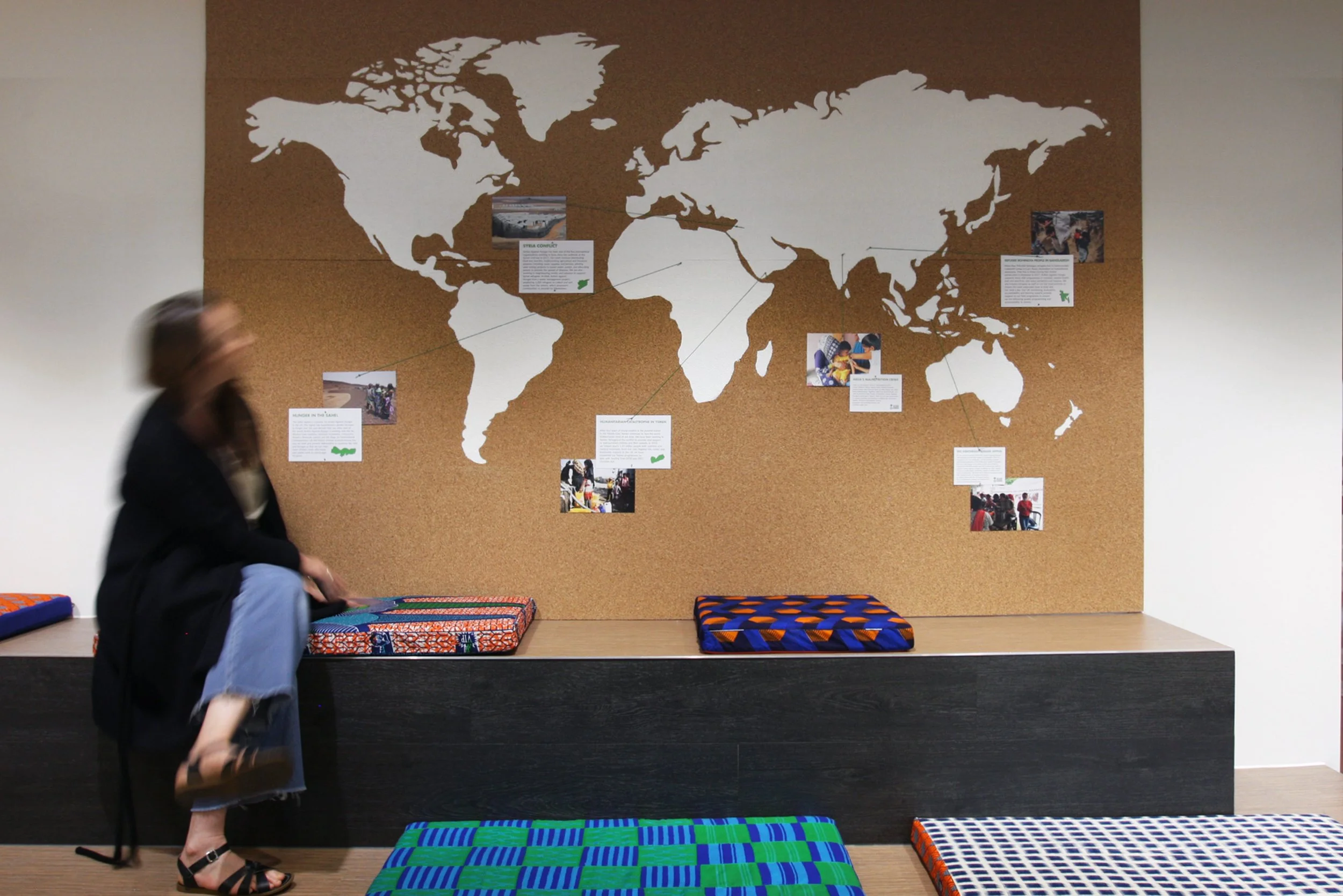 As part of the journey we created an elevated exhibition space, constructed as a floating scene above the central desks within the main office area to display some of the vibrant photography and inspirational people from AAH work overseas in action. The gallery is to inspire and motivate the team to continue the precious work they are doing by being able to visualise it in action.